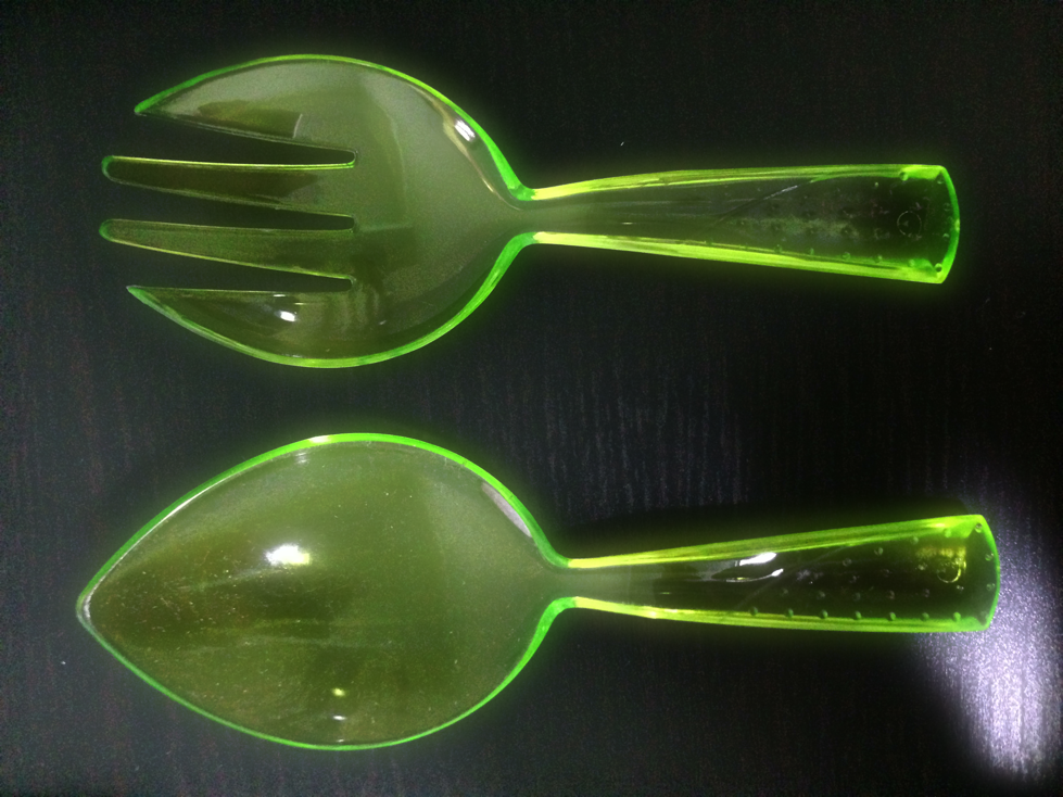Zusätzlich gibt es noch sehr schön geformte Löffel (Spoon) und auch Sporks (Göffel) in der Form eines Blatts. Da der komplette Laden in Weis und nur die Schokolade in dunklem braun gehalten ist, setzten diese Essutensilien einen schönen farblichen Akzent.