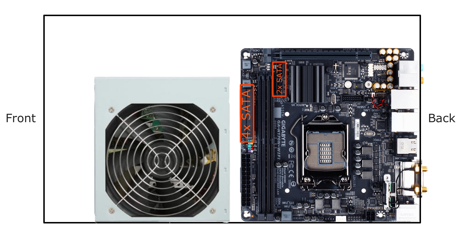 The Gigabyte motherboard is a nice choice since it has the 6 SATA-3 ports, build in Wifi, and additionally a M2 slot for SSDs. Additionally, the board is a mini-ITX boards and can use the latest generation of Core processors from intel. My idea was to use a small SSD to run the operating system from and use is as cache as well. Many people say that the operating system can also be run from a USB 3 Thumb drive, but I didn’t want to do that since the board had an SSD slot. I went for 3 4 TB drives which give me 12TB of storage, which reduces to roughly 8TB when having 1 drive redundancy.