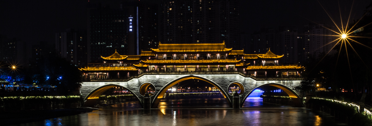 (flickr: 21788148314 width:600 caption: Anshan Bridge by night, With a restaurant on it)