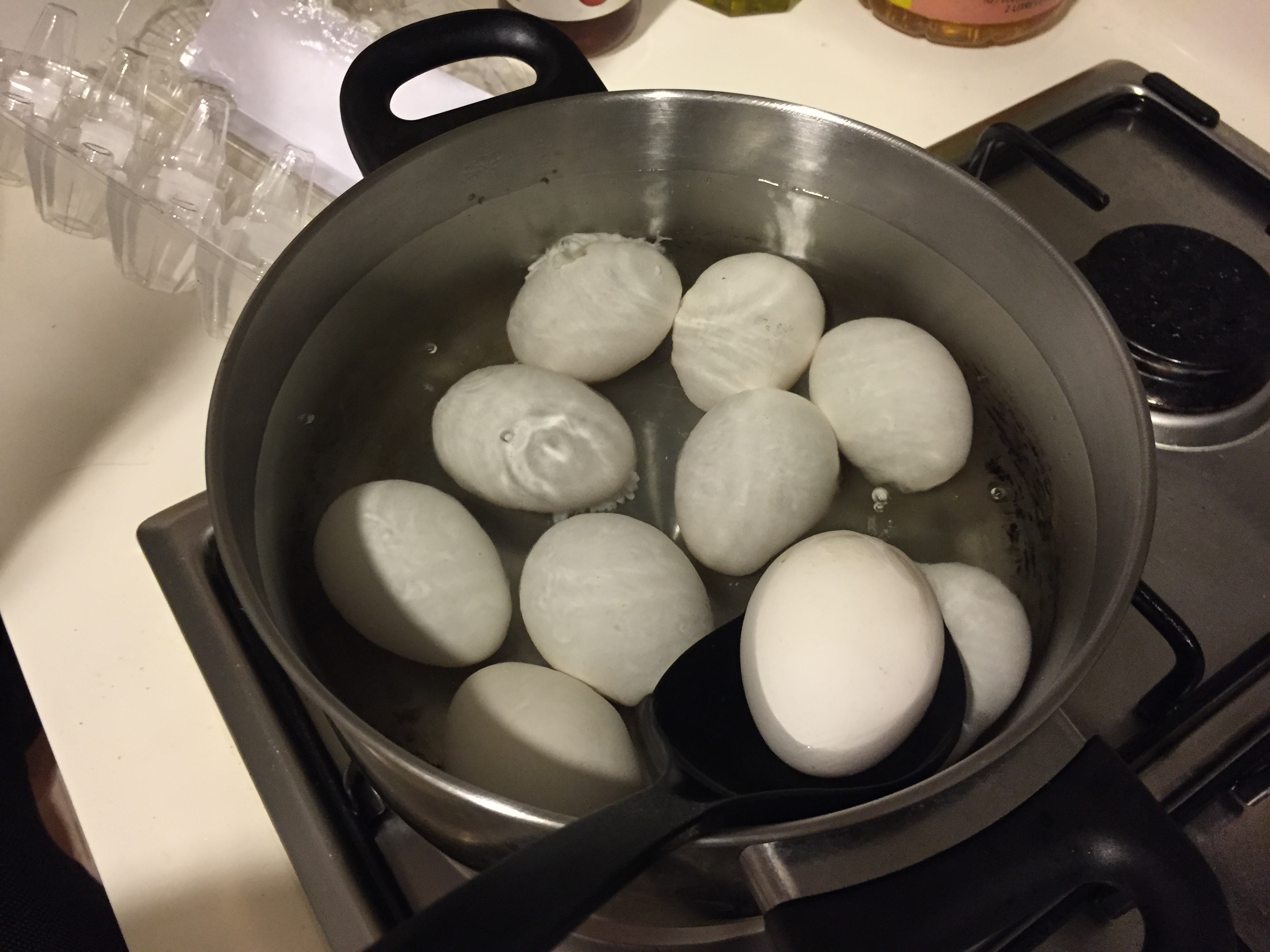 Die Eier wie gewohnt kochen. Dabei sollte man aber bedenken, etwa 30 Sekunden von der gewünschten Kochzeit abzuziehen wenn man warm-lösliche Farben verwendet, da der Färbungsprozess das Ei weiter gart.