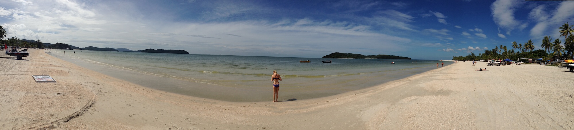 Der Vollständigkeit halber möchte ich noch die letzten Zwei Tage meines Langkawi-Urlaubs mit Wiebke abschließen. Alles Wichtige, was man touristisch auf der Insel machen kann haben wir an den ersten drei Tagen bereits abgedeckt und so haben wir uns entschlossen am Montag zum Hauptstrand der Insel nach Chenang zu fahren. Da es kein öffentliches Nachverkehrssystem auf der Insel gibt, habe wir ein Taxi genommen um zum Strand zu fahren. Die Entfernungen sind auf Langkawi auch nicht so groß. Obwohl es der Hauptstrand der Insel war, war dort nicht wirklich viel los und so konnten wir einfach zwei Liegen ergattern und uns im Schatten die notwendige Urlaubsbräune holen. Alle paar Minuten ging es dann mal ins Wasser um sich etwas abzukühlen, auch wenn es bei gut 25°C Wassertemperatur nicht wirklich erfolgreich war. Vom Strand gibt es nicht viel zu berichten, nur dass es sehr viele Leute gab, die vergeblich (Stunden lang) versucht haben Wasserski zu fahren und es dann letztendlich nicht konnten.